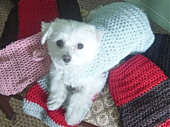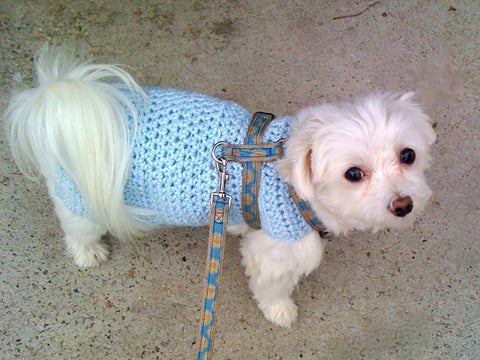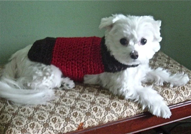 Inspired by my Maltese, ZIGGY, this hand-crochet sweater was designed for Fifth Avenue strolls and holiday charm.