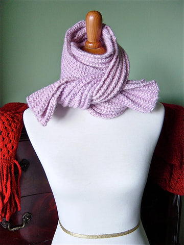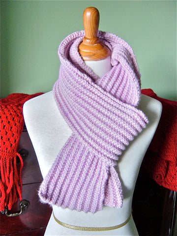 Hand-knit in 100% 8-ply cashmere yarn imported from Mongolia, this scarf features a raised rib pattern for luxe texture. The purply-pink shade is bold, glamorous, and endlessly versatile.